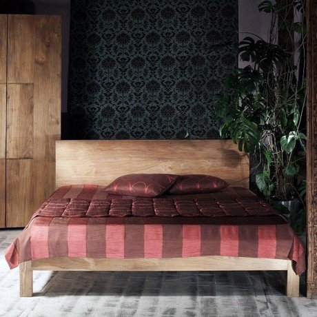 Кровать из массива тика королевских размеров с гладкой спинкой. (Размер матраса 180 x 200)