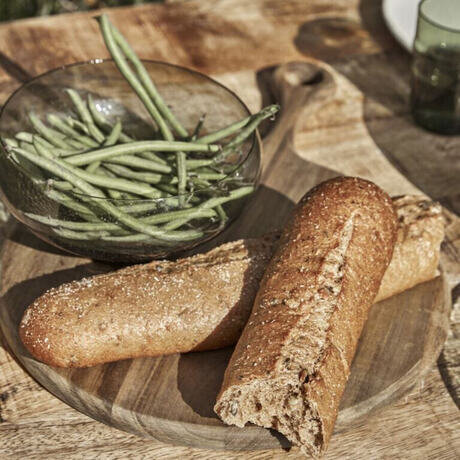 Круглая разделочная доска из дерева с размерами: 47 см x 32 см x 2 см.