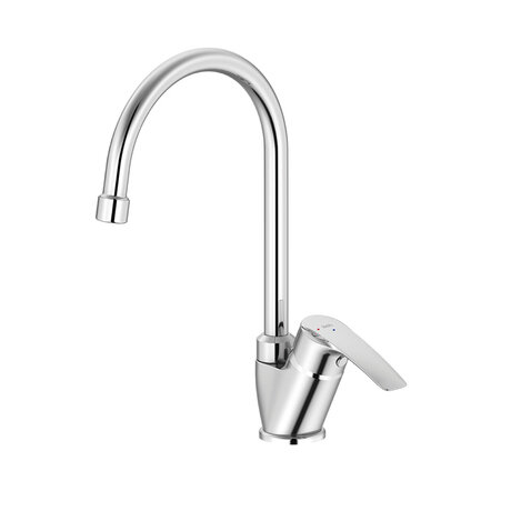 Высокий смеситель (307 мм) для кухни Ray с универсальным дизайном подойдет для разных интерьеров. Благодаря поворотному изливу пользоваться им удобно на любой кухонной мойке. Может быть установлен и на мойку, и на столешницу.