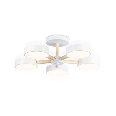 Ищете функциональное освещение для современного интерьера? Потолочная люстра LineTech FL4825 создает равномерный свет в комнате площадью до 20 м² и становится стильным акцентом в скандинавском или минималистичном дизайне. Три главных преимущества: - Пять световых зон — равномерно освещают все пространство без теней - Встроенные LED-источники общей мощностью 65 Вт — экономят до 80% электроэнергии по сравнению с люстрами на лампах накаливания - Деревянные элементы в конструкции — добавляют теплоты в интерьер и смягчают строгую геометрию Идеальный выбор для гостиной от 15 м², спальни или кухни-столовой. Компактная высота всего 160 мм позволяет установить люстру даже в помещении с низкими потолками (от 2,4 м). Диаметр светильника 580 мм обеспечивает оптимальное распределение света в помещении среднего размера.Технические особенности: