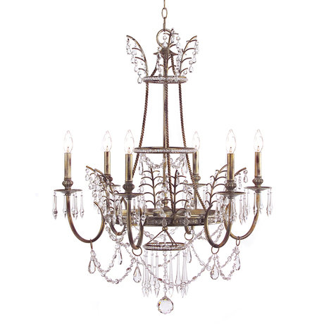 Изящная 6-рожковая люстра в серебристой отделке Arrezzo. Рассчитана на 60 Вт.