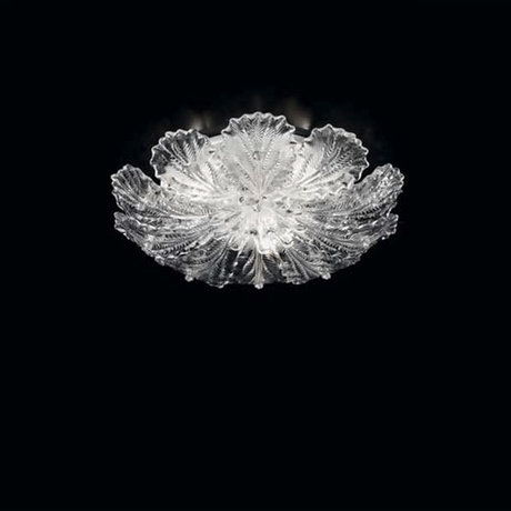 Потолочный светильник выполнен из прозрачного муранского стекла с цветочным орнаментом. Количество лампочек: 3. Мощность: 3 x 40 Вт. Тип лампы: Накаливания, E14.