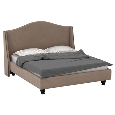 Двуспальная кровать с высокой спинкой и декоративными элементами . Спинка декорирована молдингом. Кровать установлена на фигурные деревянные ножки. Выполняется в трёх вариантах размеров спального места: 200х200 см, 180х200 см и 160х200 см. Основание: металлическое с эластичными латами из фанеры.