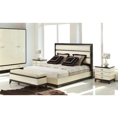 Кровать с решеткой выполнена в стиле Ар деко. Высокое изголовье обито бежевым велюром MOKI-45. Размер спального места 180*200 см.
