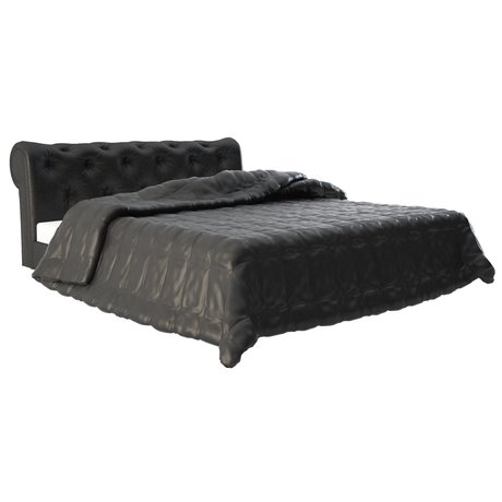 Удобная двуспальная кровать в современном стиле с обивкой из экокожи и элегантными ножками из алюминиевого сплава. Мягкое изголовье украшено каретной стяжкой ручной работы. Насыщенный черный цвет придает модели неожиданно выразительный и эффектный облик .