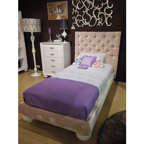 Односпальная кровать итальянского производства выполнена в стиле современного ар деко. Высокое изголовье украшает мелкая стежка-капитоне.